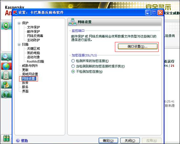 - 打开卡巴斯基设置界面。