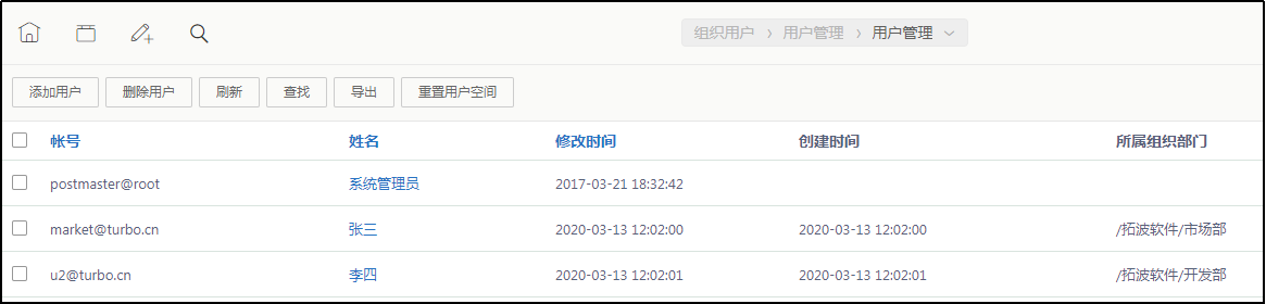 - 进入“组织用户”》“用户管理”,确认导入成功