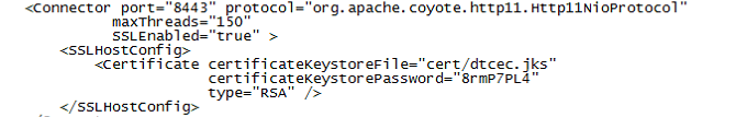 - 路径/turboex/turbowebapp/conf/server.xml,填写证书存在的路径以及证书密码,重启web服务,查看/turboex/turbowebapp/logs/catalina.out 日志,确认文件运行正常,在系统检查https端口是否已启动