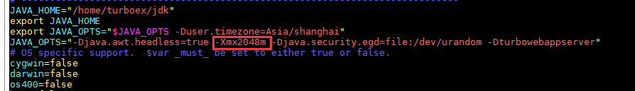 - 修改web使用的内存大小 vim /turboex/turbowebapp/bin/catalina.sh